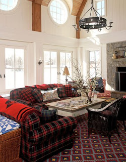 I'm mad for plaid but only in small doses--a soft blanket or pillow on a lounge chair or sofa provides just the right amount of plaid panache for me and can be easily changed based on the season and my ever changing whim. I think style icon Lee Radziwill's pied-a-tierre in Paris, which features a vintage cream Christian Liaigre's sofa stylishly draped in an earth toned plaid throw, hits just the right note. Subtle and casually chic, the plaid throw softens the sofas angular shape juxtaposing nicely with the paired glass and brass coffee tables. Ms. Radziwill makes it look oh so easy!